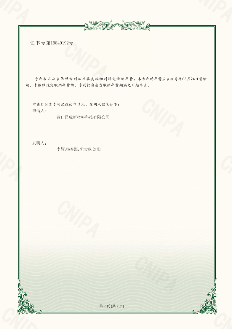 營(yíng)口昌成新材料科技有限公司 版權(quán)所有(C)2021?網(wǎng)絡(luò)支持?中國(guó)化工網(wǎng)?全球化工網(wǎng)?生意寶?網(wǎng)盛建站?著作權(quán)聲明 遼ICP備2021005949號(hào)